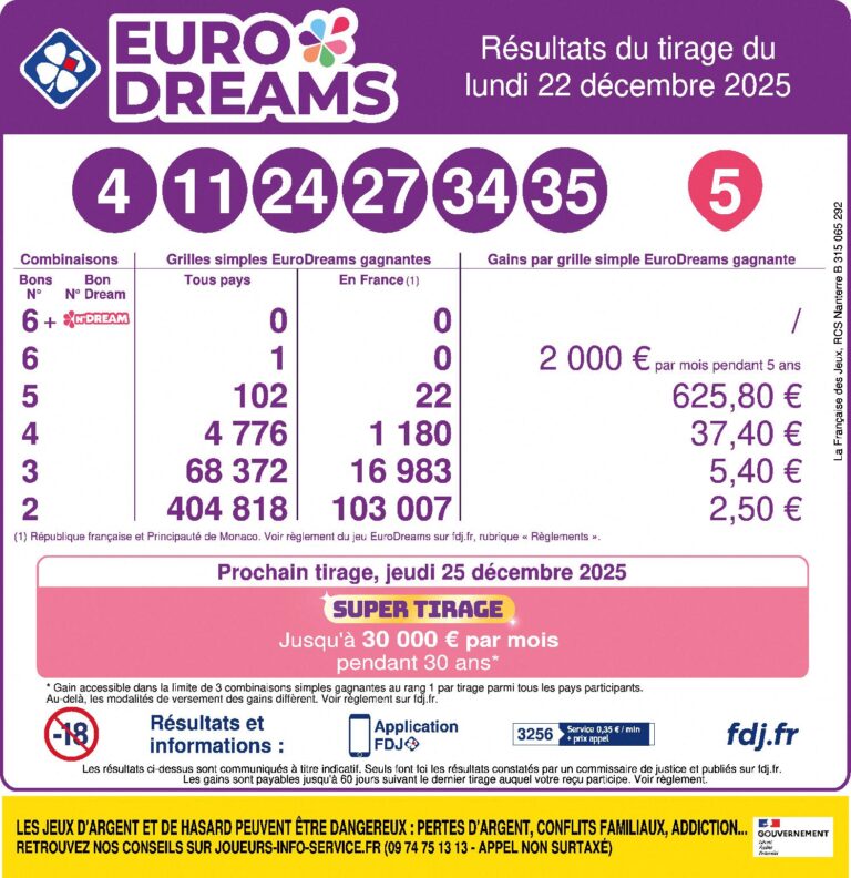 FDJ Lotto results for Monday 22.12.2025